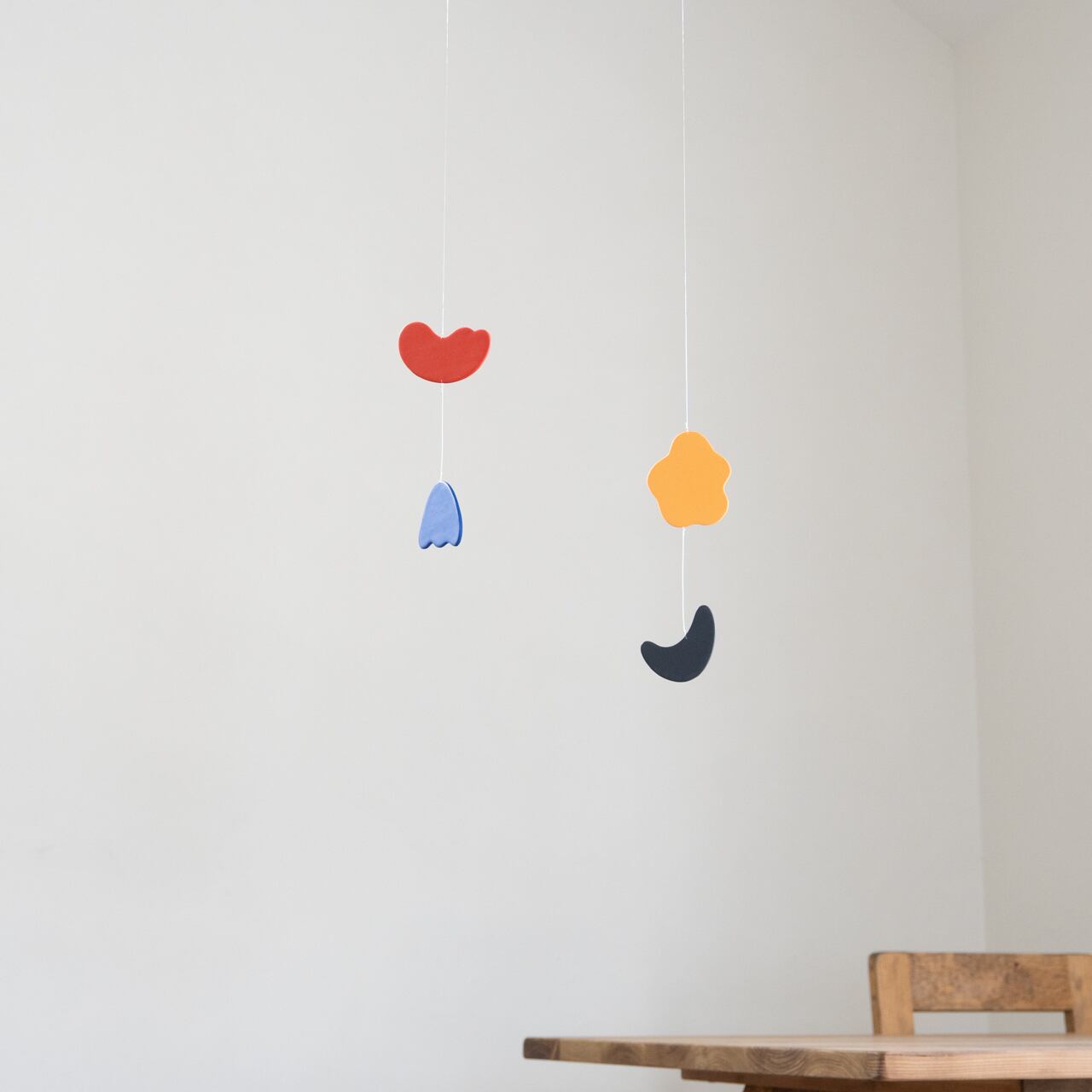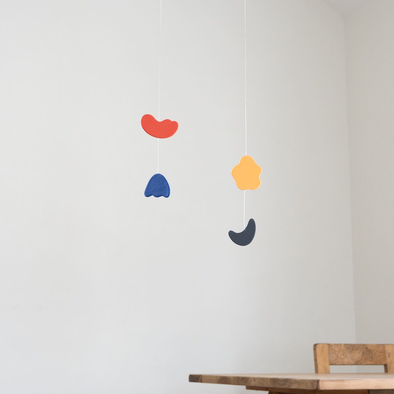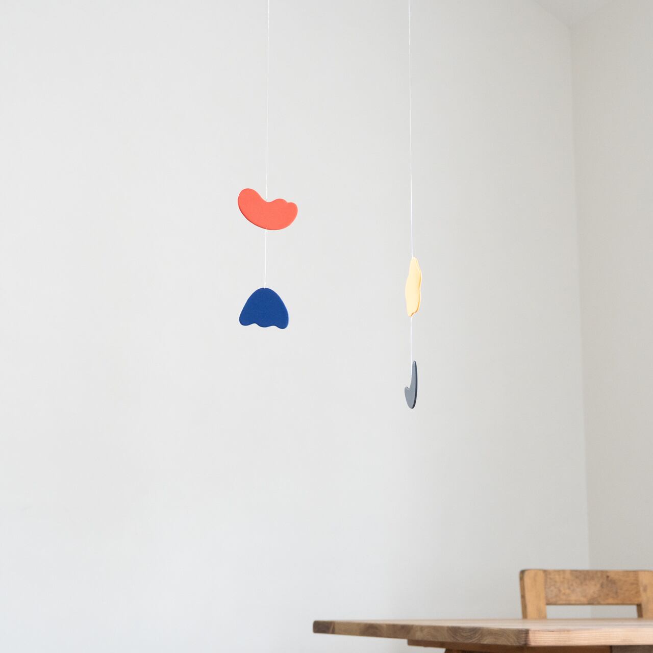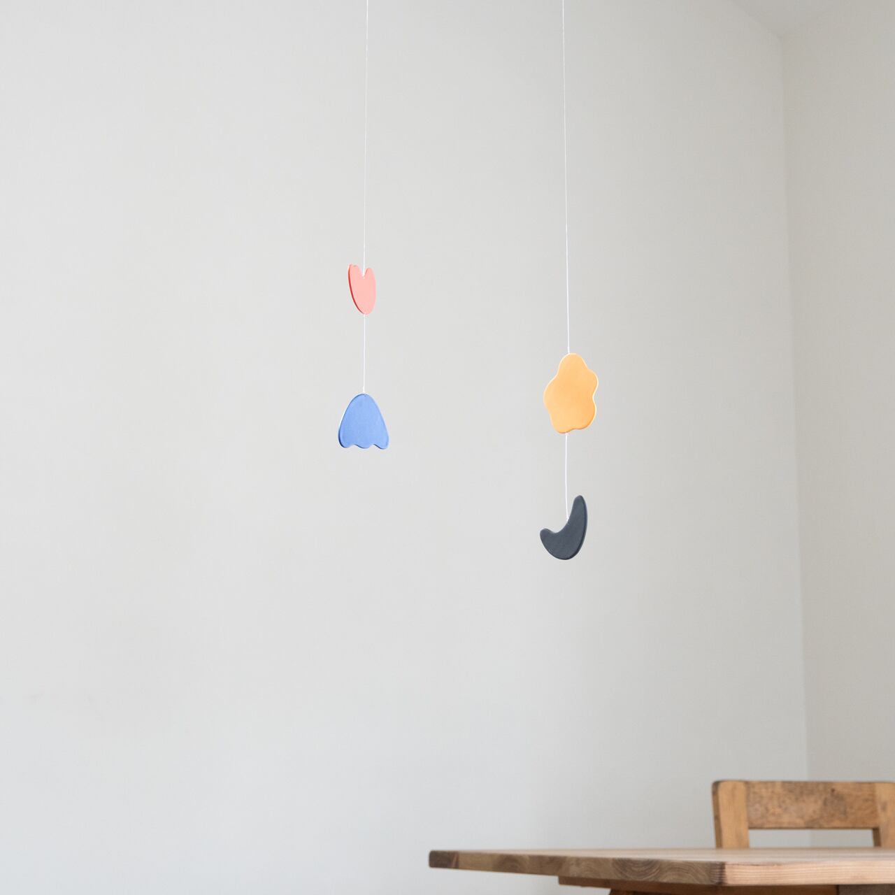 定番モビールの色から2色ずつセレクト、形はミニモビールのために新しく制作しました。