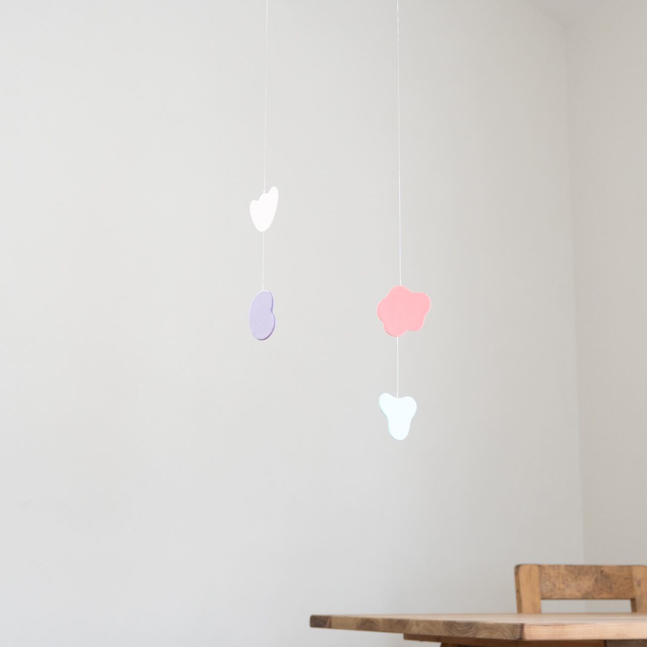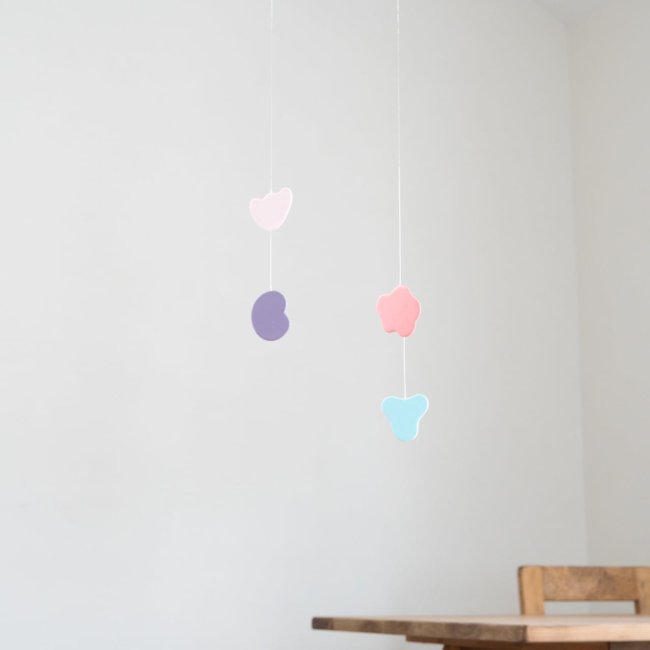 定番モビールの色から2色ずつセレクト、形はミニモビールのために新しく制作しました。