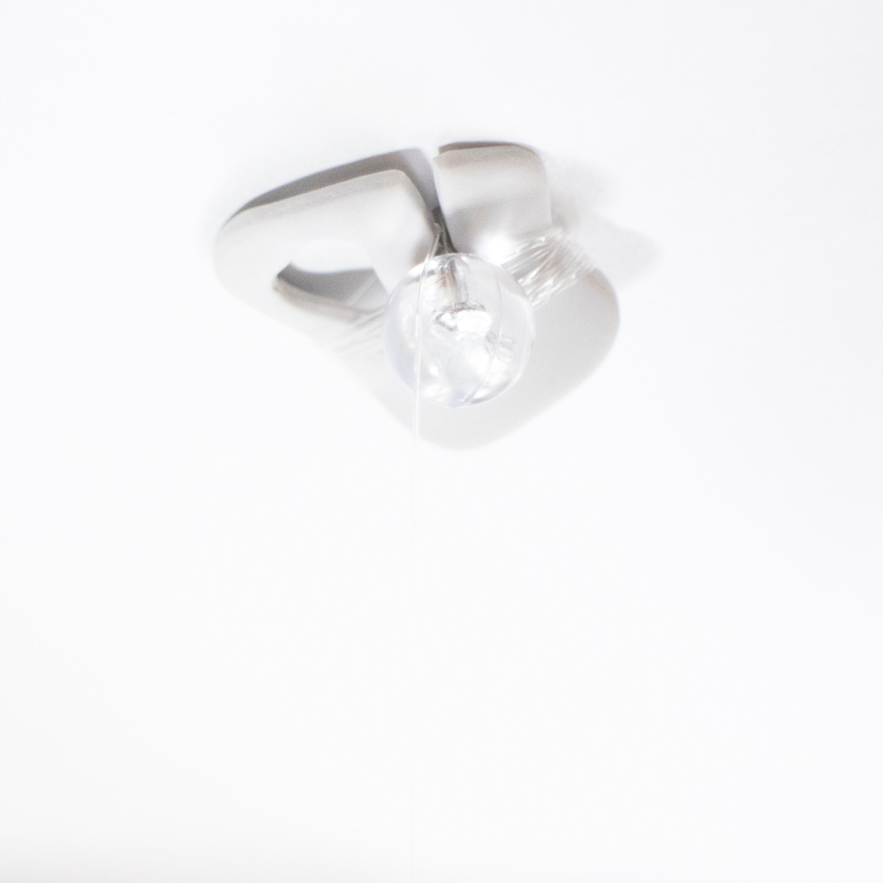 4. 天井に直接刺す場合は、4枚目の画像を参考に画鋲を切り込み根元の小さな穴、または隣の大きな穴に刺して留めてください